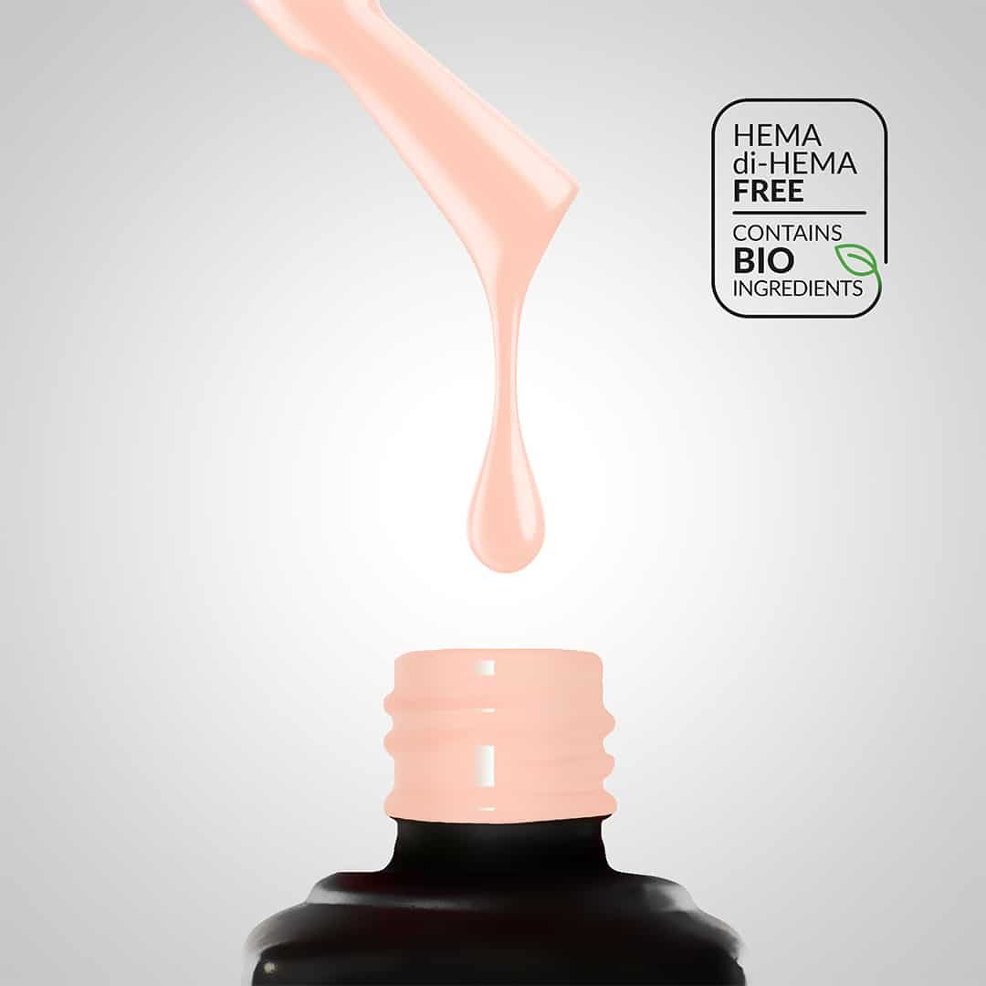 Dit product staat niet alleen voor kleur, maar ook voor een nieuwe standaard in prestaties. Deze nieuwe generatie hybride lakken is ontwikkeld met zowel nagelstylisten als klanten in gedachten. De innovatieve formule is HEMA FREE en DI-HEMA FREE, waarbij de vervangende bestanddelen tot wel 76% uit plantaardige (BIO) bronnen komen.